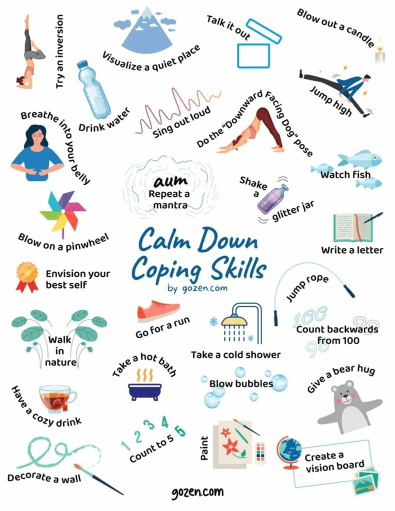 Below are calming skills that will help children and adults calm down.