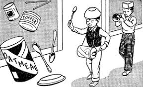 Make some noise today. Gather a wooden spoon and a plastic lid to make a drum and march around the room all together singing your favorite marching song – The grand old duke of York works well!